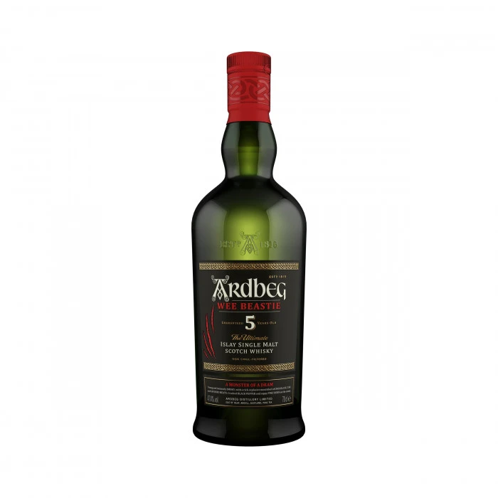 Part of the distillery’s Ultimate Range, Ardbeg Wee Beastie is a feisty and fiery dram, and the youngest whisky that Ardbeg has ever made. Wee Beastie is the result of Ardbeg’s whisky creators setting out to make the rawest, smokiest Ardbeg ever. This expression is free from chill-filtration and has been bottled at 47.4% abv.