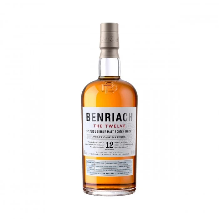 This 12-year-old Speyside single malt is matured in a combination of sherry casks, bourbon barrels and port pipes, all married together under the expert care of Master Blender Rachel Barrie. Part of the refreshed core line-up from Benriach, this new recipe for the 12-year-old expression brings intensified notes of baked fruits and a rich smoothness.