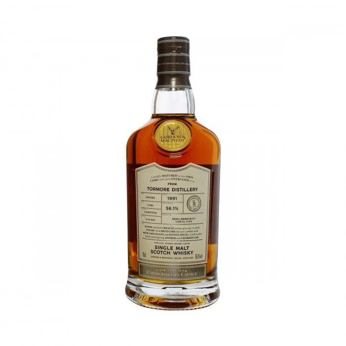 From Gordon & McPhail’s Connoisseurs Choice collection, this spectacular Tormore expression has been matured for 31 years in a single refill sherry butt, before being decanted at a cask strength of 56.1% abv. One of only 518 bottles.