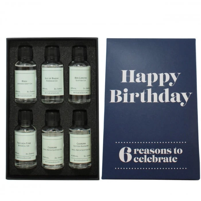 Treat the gin aficionado in your life to this stunning birthday gift set. Six perfect gins to celebrate their special day! Included within this gift pack is the Ben Lomond Gin, Caorunn, Caorunn Scottish Raspberry, Roku, Isle of Raasay, and The Loch Fyne Botanical Gin.